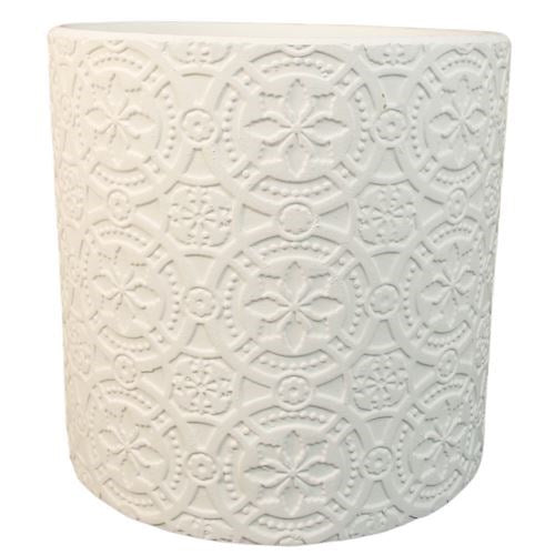 Cement Round Pattern Pot White- 18x18x17cm